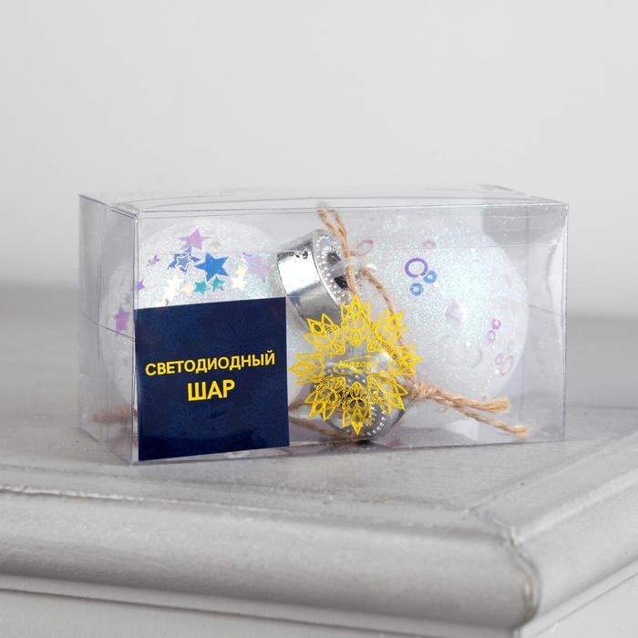 Набор ёлочных шаров «Шары с блёстками» 3 шт., батарейки, 5 LED, свечение белое