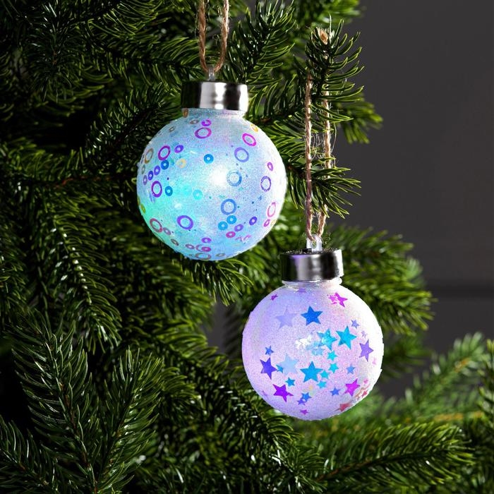 Набор ёлочных шаров «Звёзды и кольца» 2 шт., батарейки, 1 LED, свечение RGB