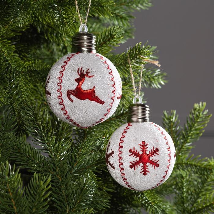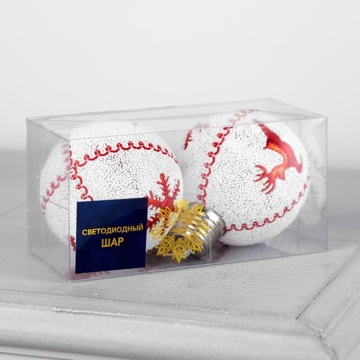Набор ёлочных шаров «Красные снежинки и олень» 2 шт., батарейки, 1 LED, свечение тёплое белое