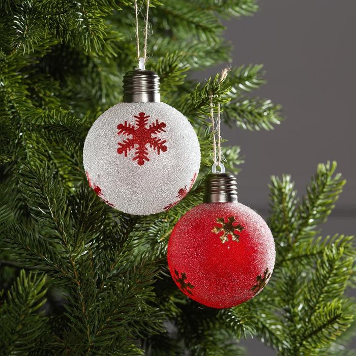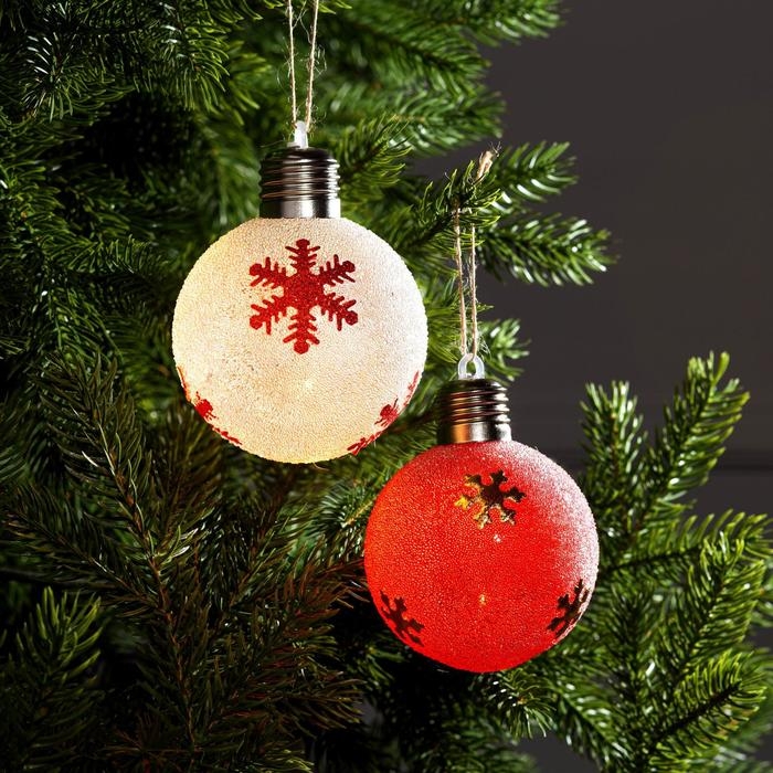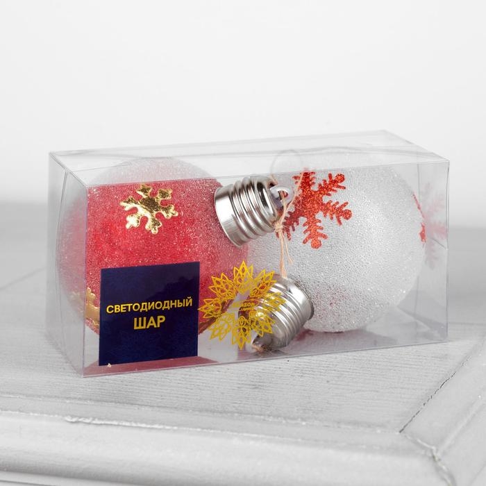 Набор ёлочных шаров «Снежинки» 2 шт., батарейки, 1 LED, свечение тёплое белое