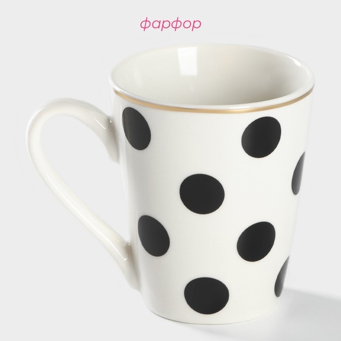 Кружка фарфоровая Доляна «Круги», 350 мл, цвет белый