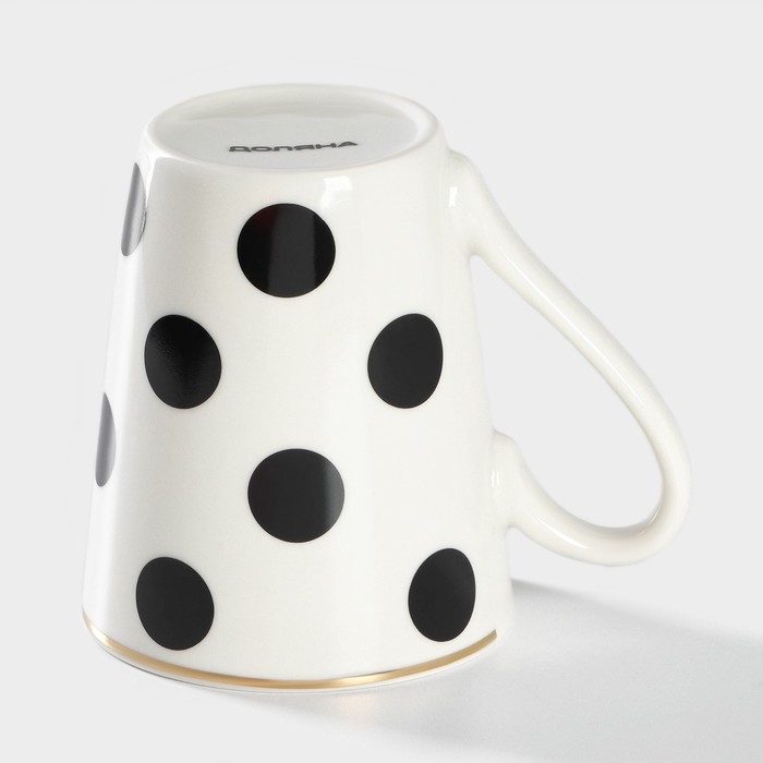 Кружка Доляна «Круги» изготовлена из качественного костяного фарфора и украшена золотой окантовкой. Фарфоровое изделие обладает прочностью, выдерживает перепады температур.