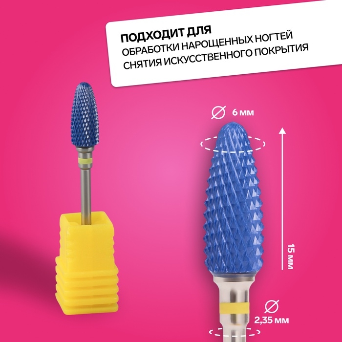Фреза керамическая для маникюра «Кукуруза», супер мелкая нарезка, 6 × 15 мм, в пластиковом футляре, цвет синий