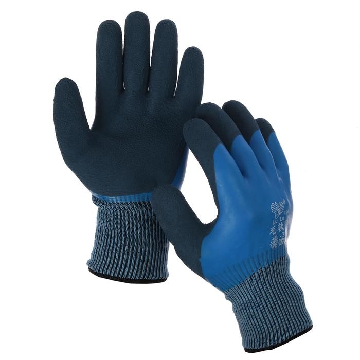 Перчатки нейлоновые, утеплённые, с двойным латексным обливом, размер 10, синие , Greengo