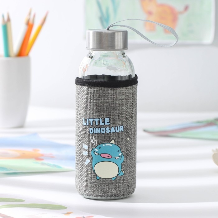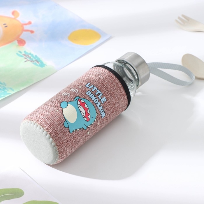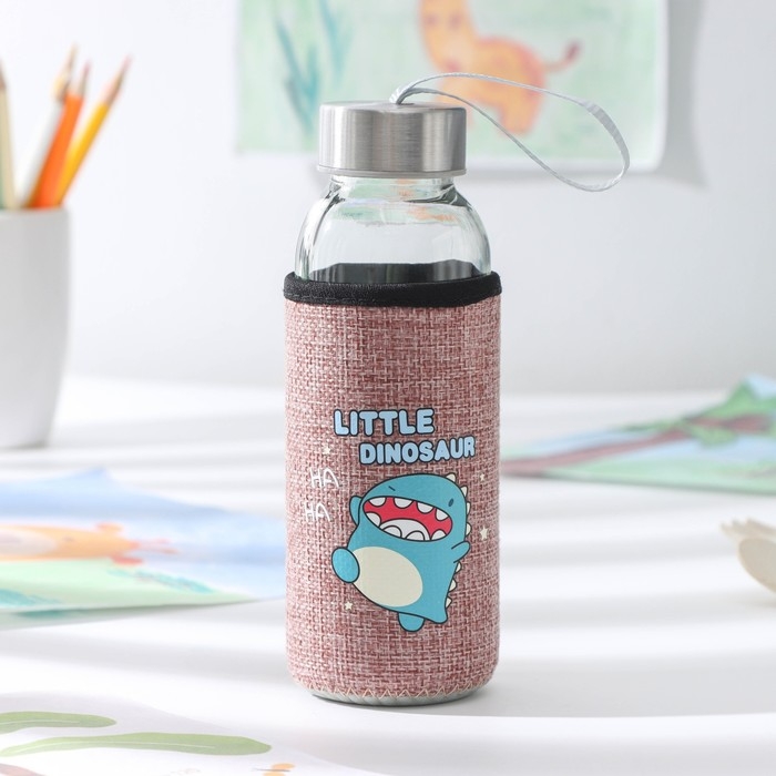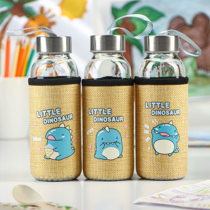 Бутылка для воды стеклянная в чехле «Дино», 300 мл, h=17 см, рисунок МИКС