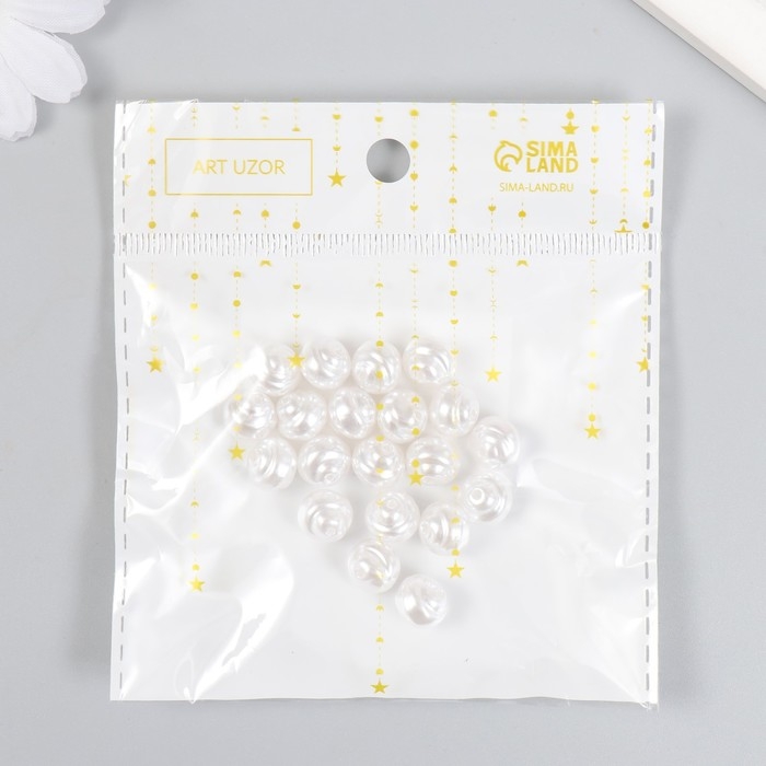 Бусины для творчества пластик "Жемчуг рогалик" набор 20 шт 1х1х1 см