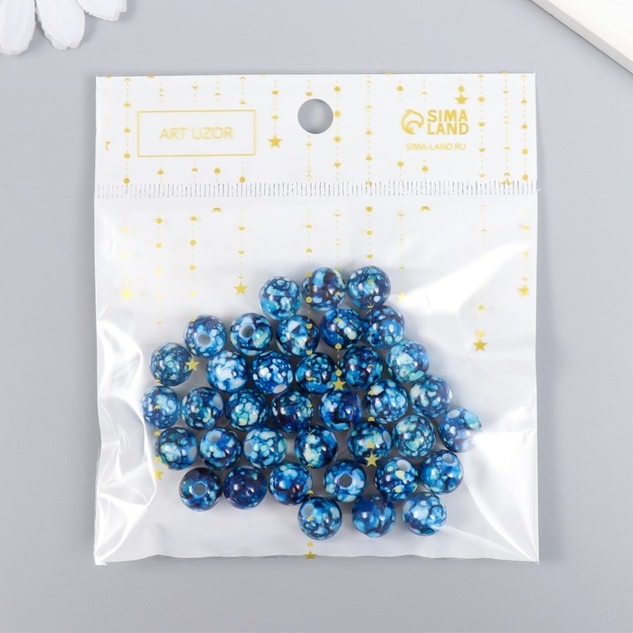 Бусины для творчества пластик "Шарики шамот синий" набор 20 гр d=1 см