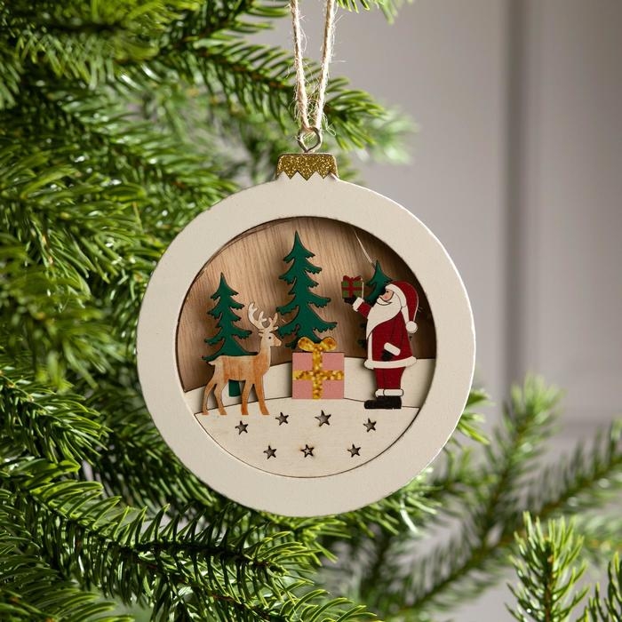 Ёлочная игрушка «Шар с Дедом Морозом», от батареек, свечение тёплое белое