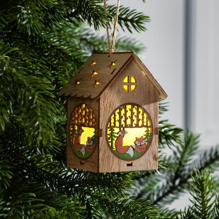 Ёлочная игрушка «Домик с лисой», от батареек, свечение тёплое белое