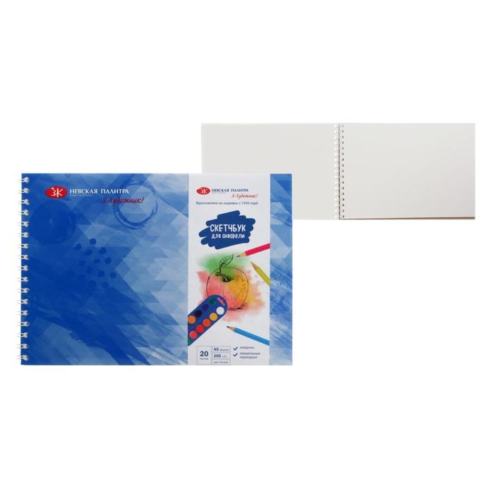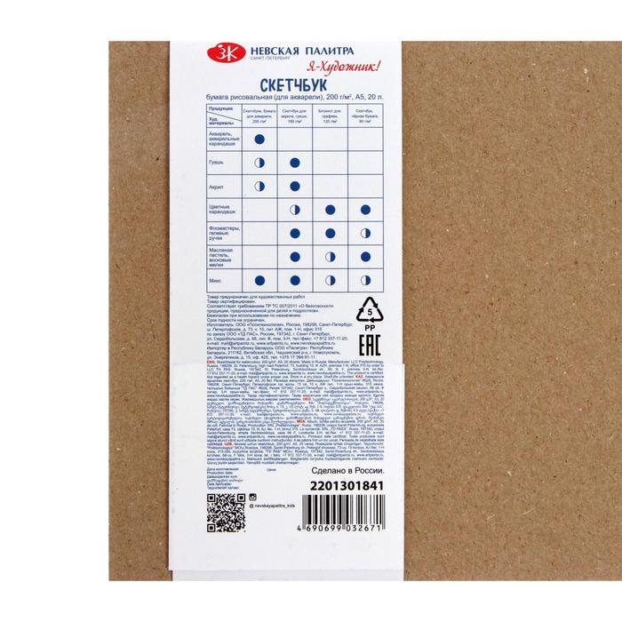 Скетчбук для акварели А5, 20 листов на гребне ЗХК "Я - Художник!", жёсткая подложка, бумага акварельная ГОЗНАК, 200 г/м2 (220451843)