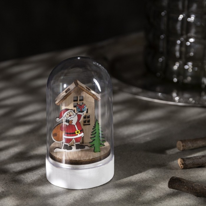 Светодиодная фигура под куполом «Дед Мороз с мешком» 6 × 9.5 × 6 см, дерево, батарейки LR1130х3 (в комплекте), свечение тёплое белое