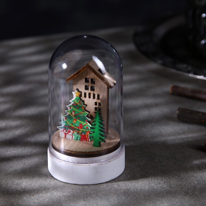 Светодиодная фигура под куполом «Дом и ёлка» 6× 9.5 × 6 см, дерево, батарейки LR1130х3 ( в комплекте), свечение тёплое белое