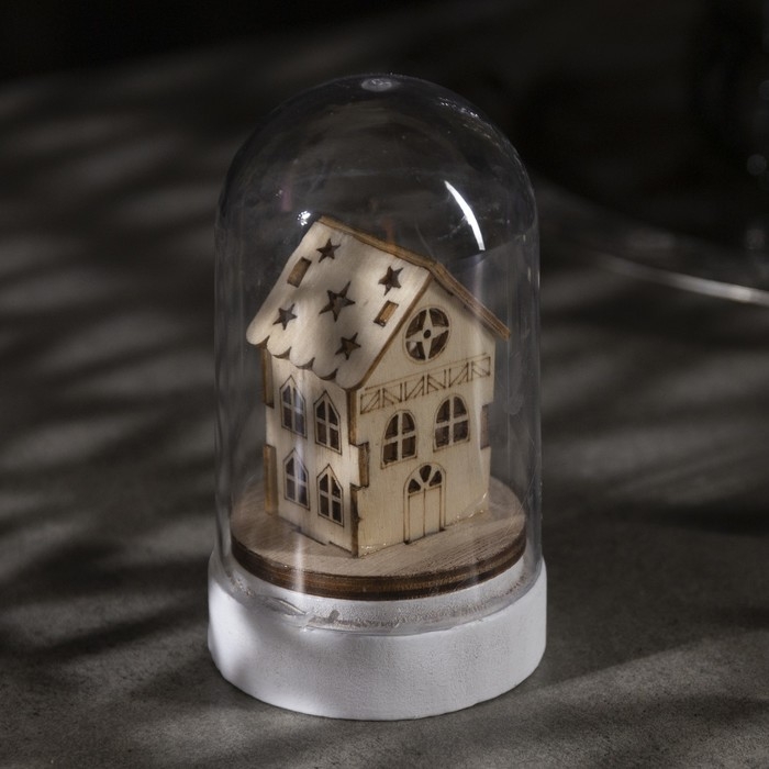 Светодиодная фигура под куполом «Домик» 6× 9.5 × 6 см, дерево, батарейки LR1130х3 (в комплекте), свечение тёплое белое