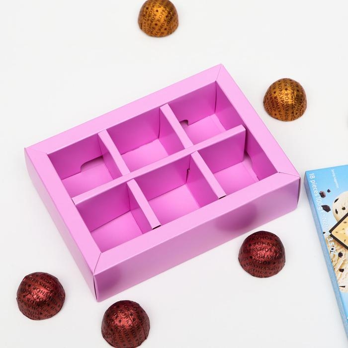 Коробка для конфет 6 шт, сиреневый, 13,7 х 9,85 х 3,86 см