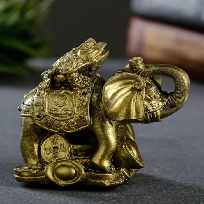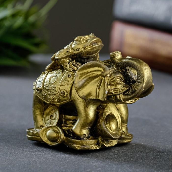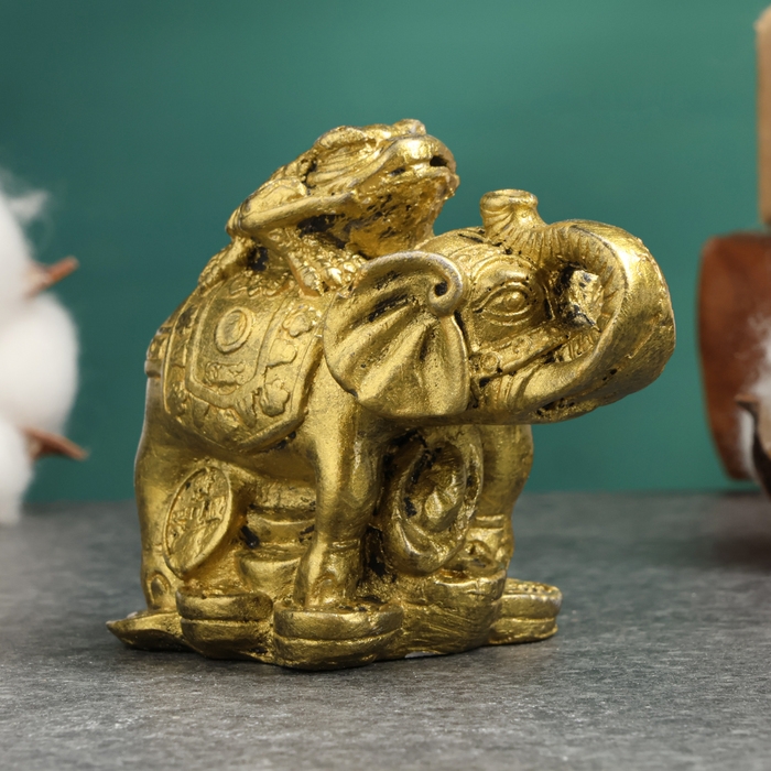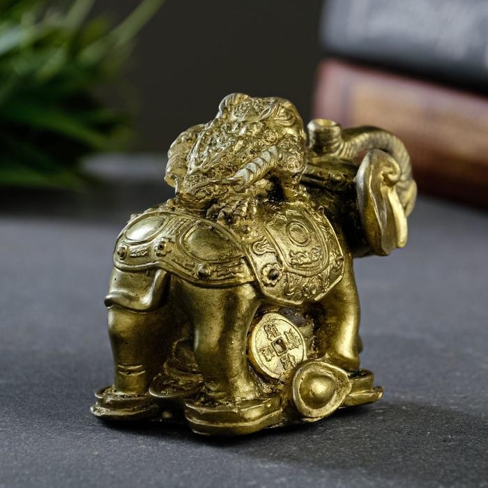 Фигура "Слон на деньгах" состаренное золото, 10х8,5х6см