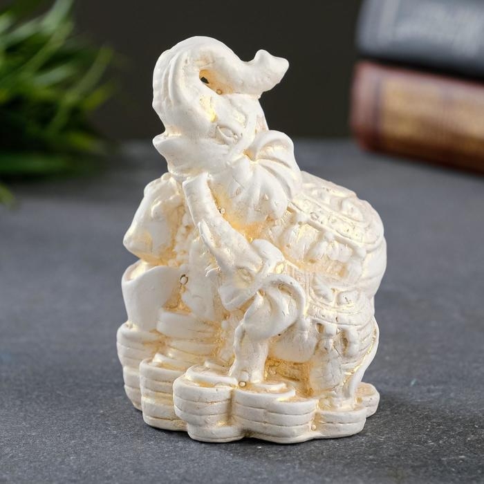 Фигура "Слон со слоненком на деньгах" позолота, 6,5х10х7см
