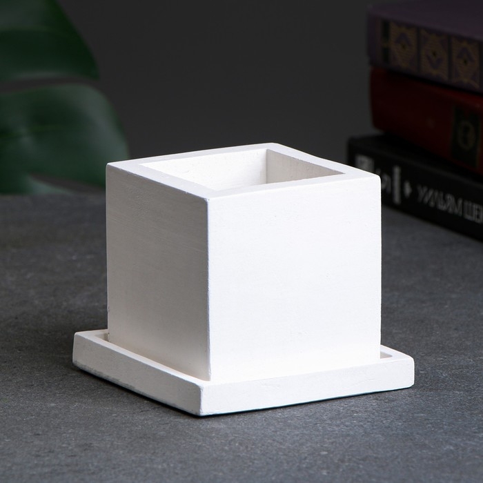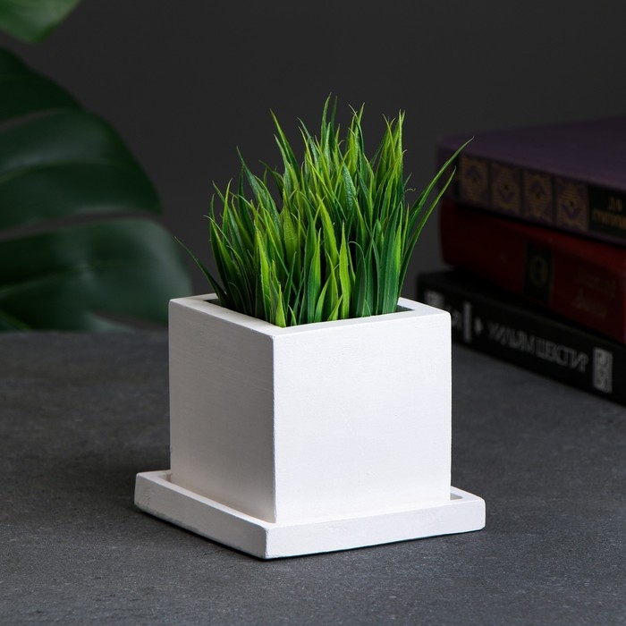 Фигурное кашпо "Куб с поддоном" белое 0 25 л/ 8х6х6см