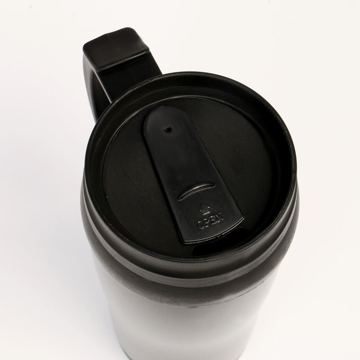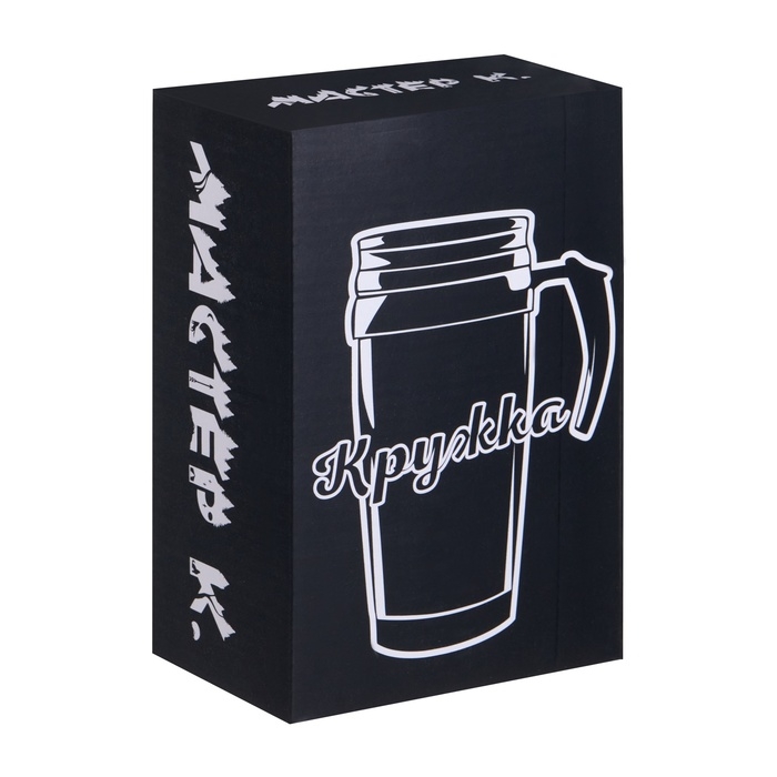 Термокружка для кофе и чая "Мастер К" идеальна для офиса, автомобиля, длительных прогулок и детям в школу. Благодаря специальному покрытию надежно лежит в руке.