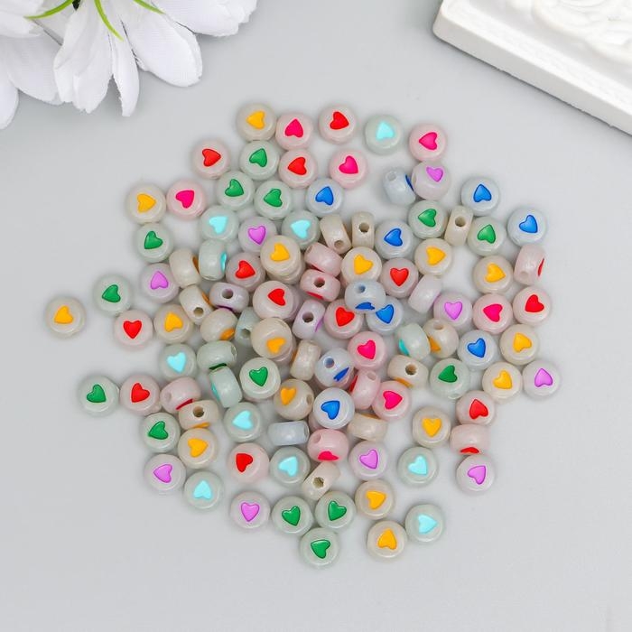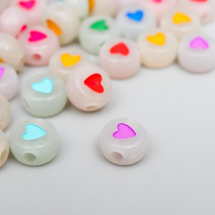 Набор бусин для творчества акрил фосфорные "Сердечки" набор 20 гр 0,4х0,7х0,7 см