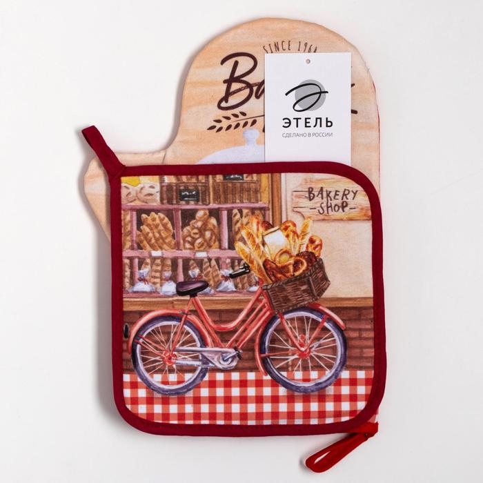 Кухонный набор Этель "Bakery house": варежка-прихватка 20х28 см, прихватка 19х19 см, 100% хлопок