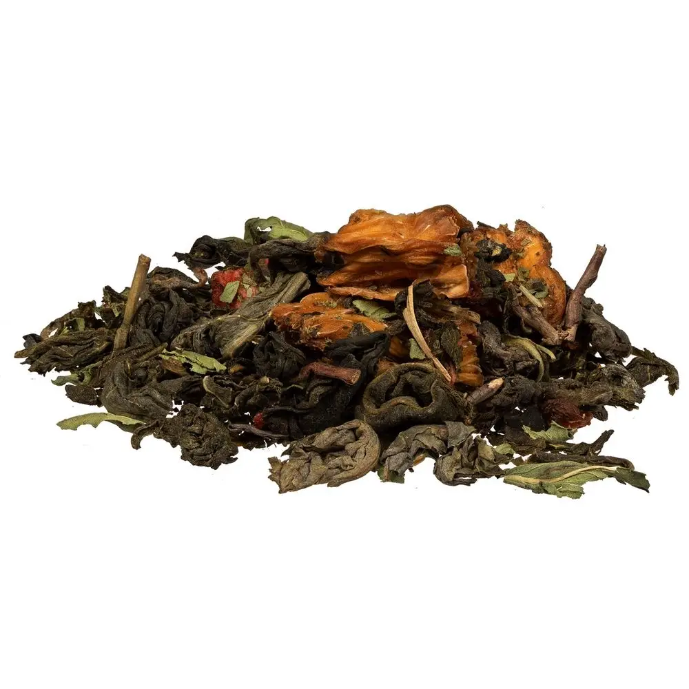 Зеленый крупнолистовой чай с кусочками ананаса, сублимированной клубникой и сушеной мятой обладает многогранной палитрой вкуса и аромата. В состав чая входят только натуральные ингредиенты, а чайные листья предварительно вымачиваются в соке ананаса: вкус напитка становится особо насыщенным и обогащенным. «Сокочай» станет прекрасным подарком для любителей необычных вкусовых сочетаний и здорового образа жизни.