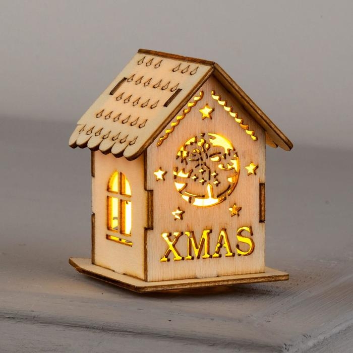 Ёлочная игрушка «Домик с башней», от батареек, свечение тёплое белое