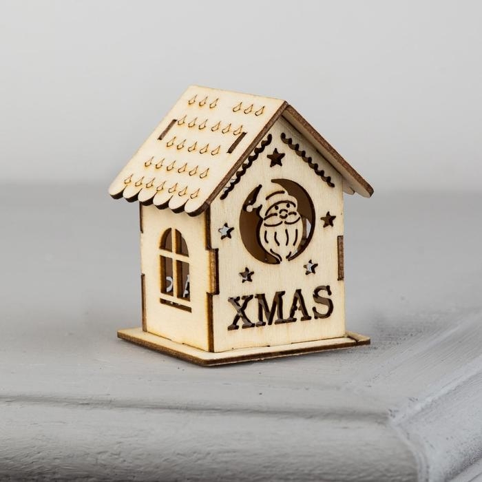 Ёлочная игрушка «Домик с Дедом Морозом», от батареек, свечение тёплое белое