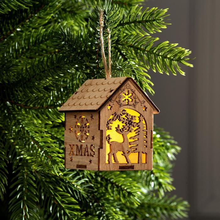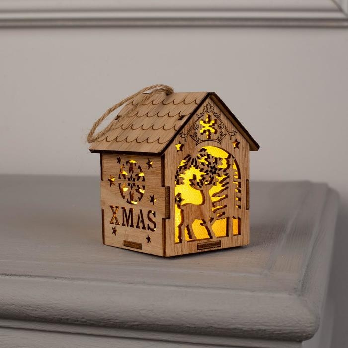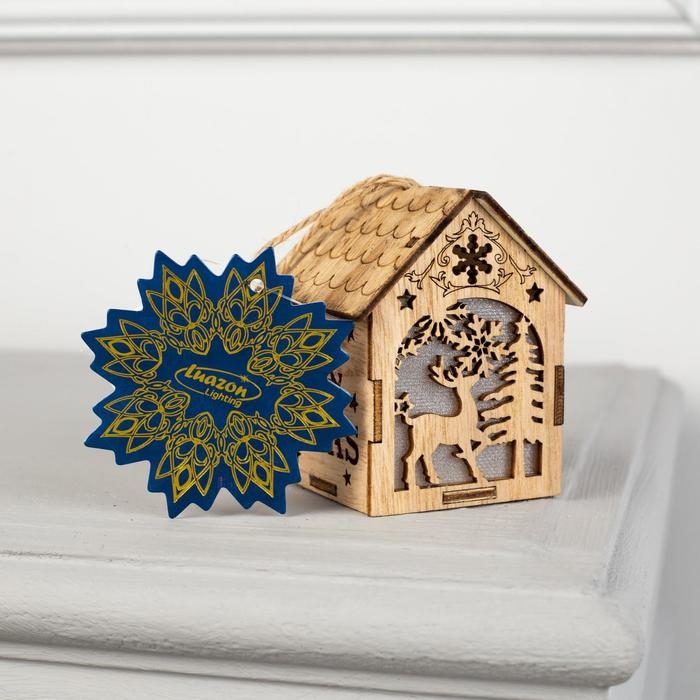 Ёлочная игрушка «Домик с оленем», от батареек, свечение тёплое белое