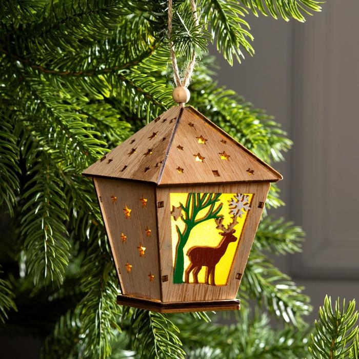 Ёлочная игрушка «Фонарь с оленем», от батареек, свечение тёплое белое