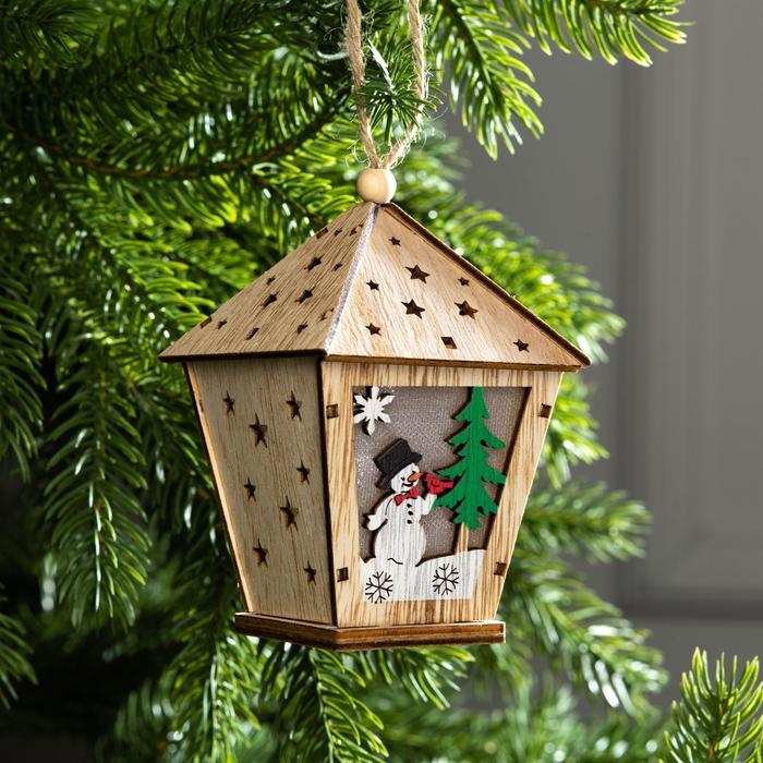 Ёлочная игрушка «Фонарь со снеговиком», от батареек, свечение тёплое белое