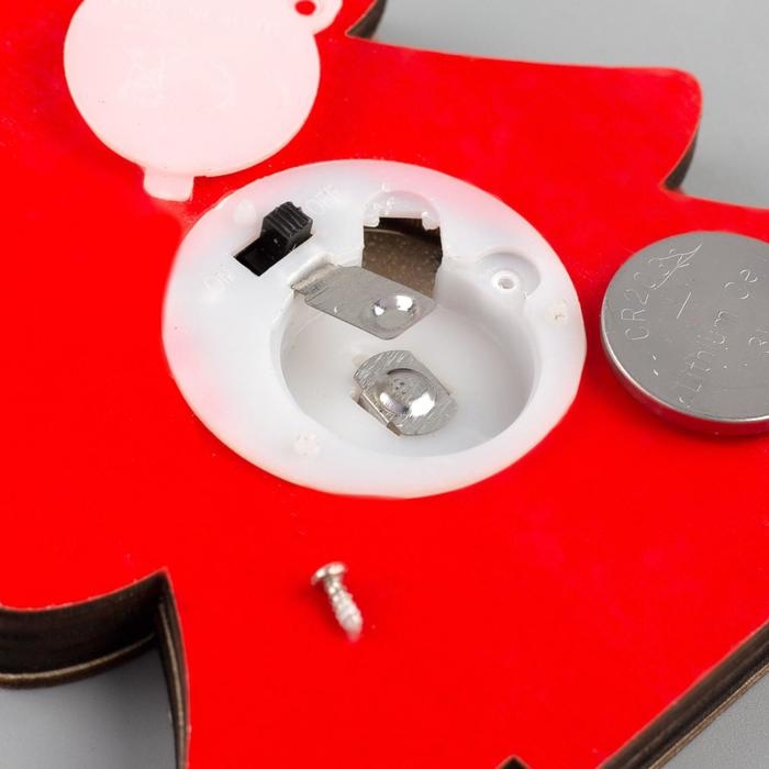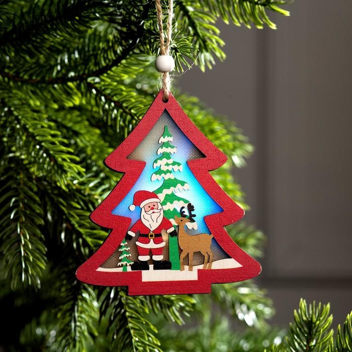 Ёлочная игрушка «Красная ёлочка с Дедом Морозом», от батареек, свечение RGB