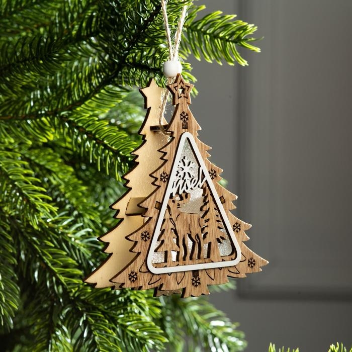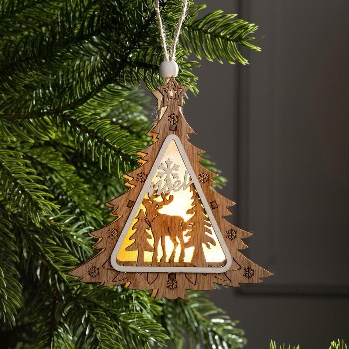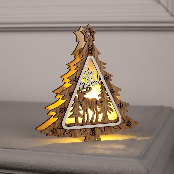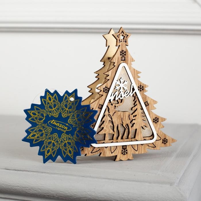 Ёлочная игрушка «Ёлочка с оленем», от батареек, свечение тёплое белое
