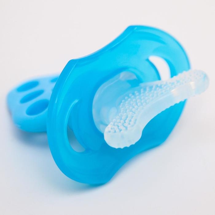 Прорезыватель силиконовый «Для передних зубов», цвет синий, с колпачком, двусторонний, Крошка Я