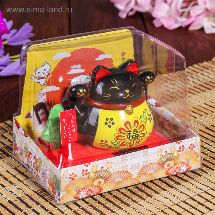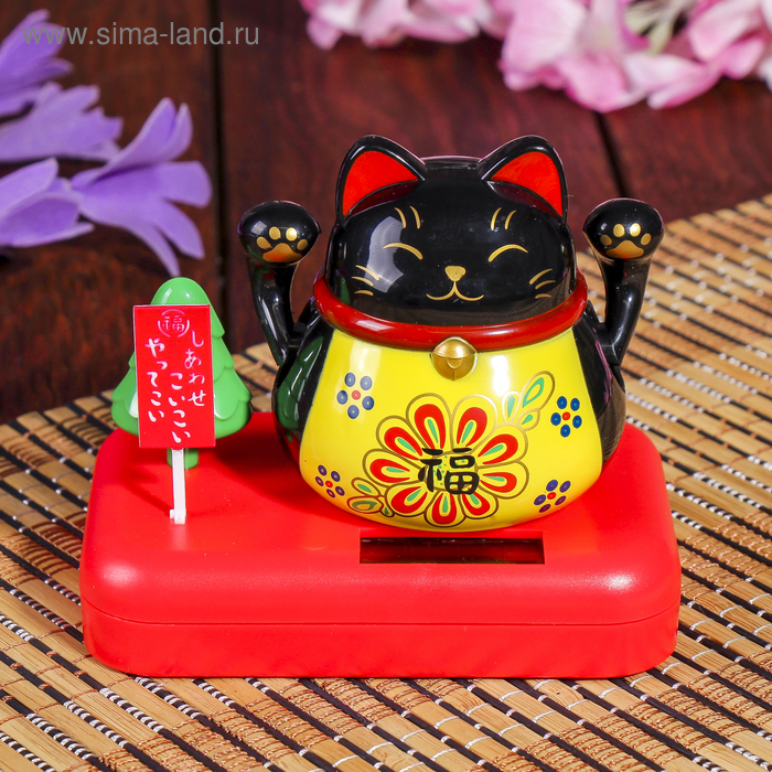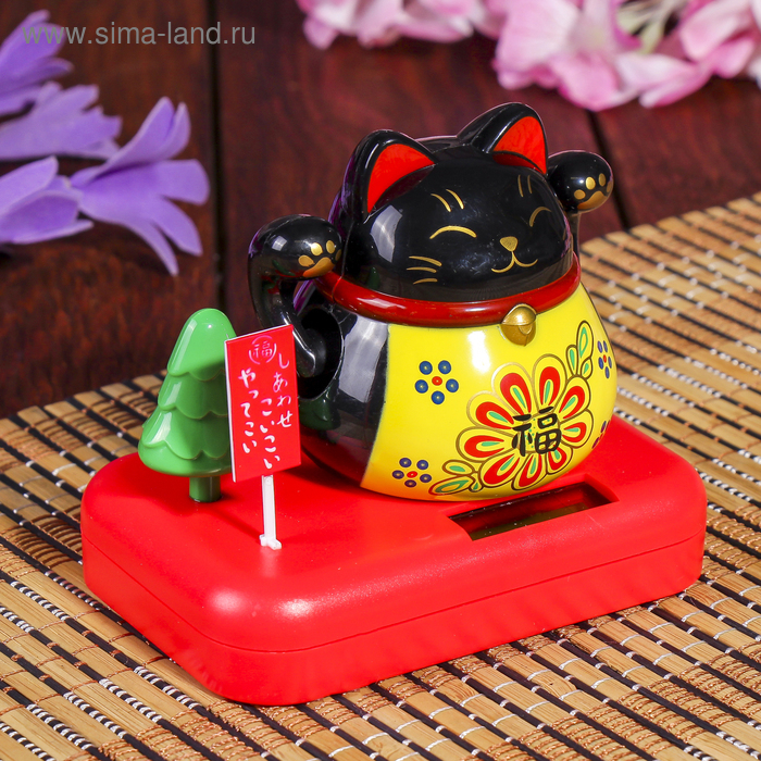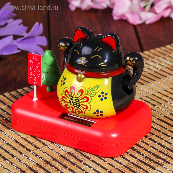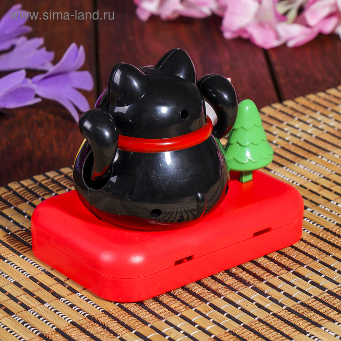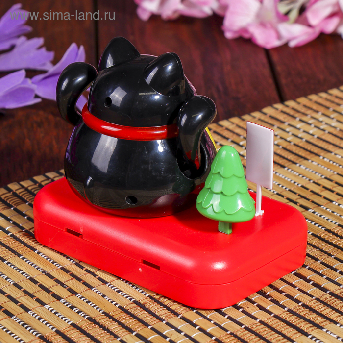 Маятник пластик от солнечной батареи "Кот Манэки-нэко с деревом" чёрный 8х10х6 см