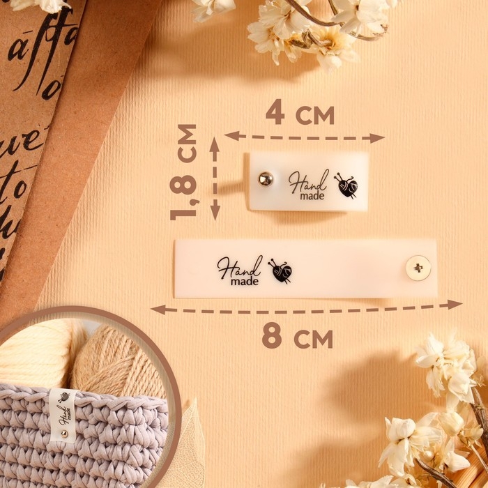 Бирка с кнопкой «Hand made», 8 × 1,8 см, 10 шт, цвет матовый/чёрный