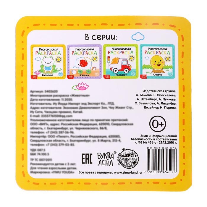 Многоразовая раскраска «Животные», 12 стр.