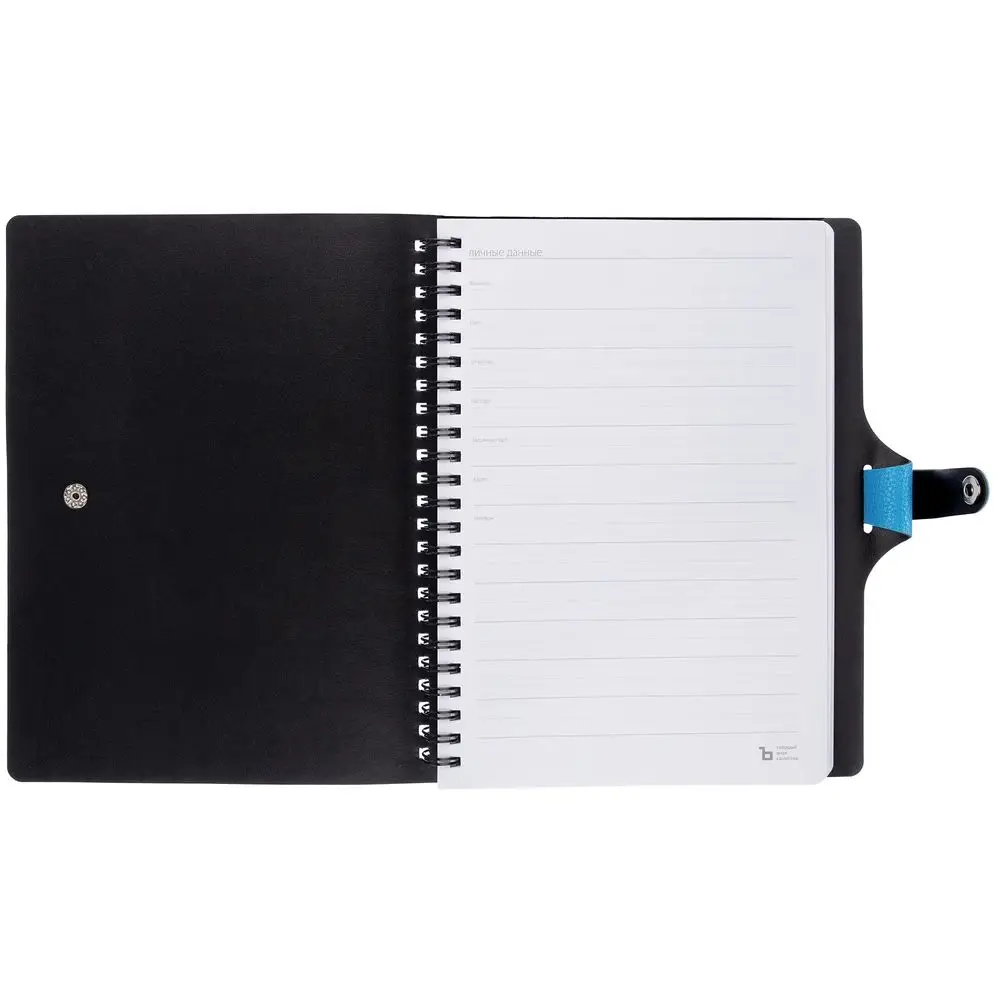 Ежедневник с гибкой обложкой, выполнен из материалов La Fite, голубой JJ и Waltz черный АА.