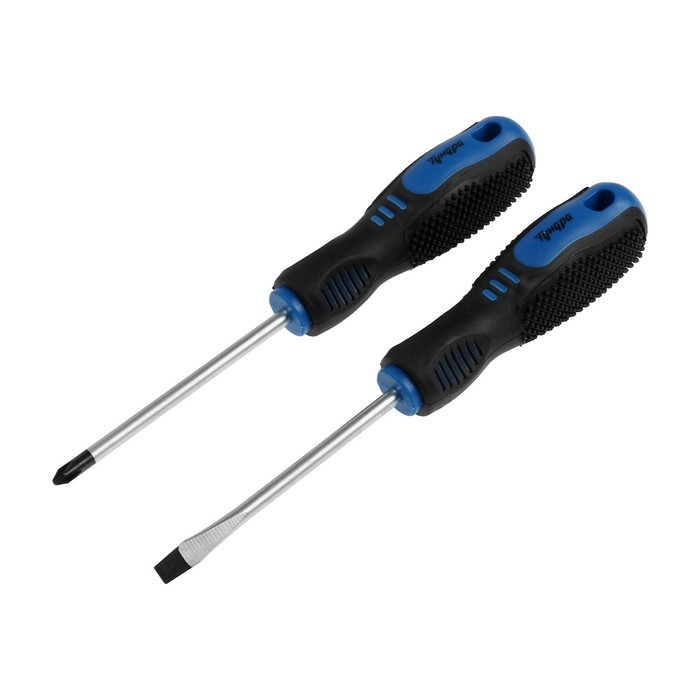 Набор отверток ТУНДРА, CrV, хром, магнит, 2К рукоятки, PH2/SL6 х 100 мм, 2 шт.