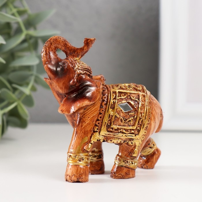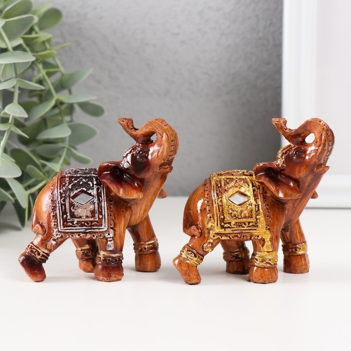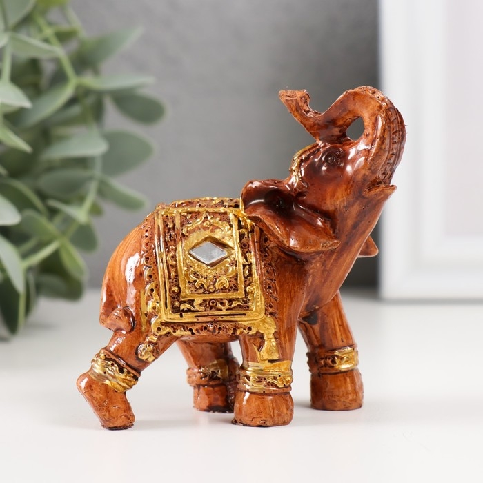 Сувенир полистоун "Слон под дерево в серебристой попоне" МИКС 7,5х6х3,2 см
