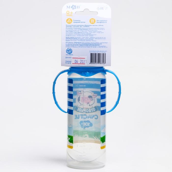 Бутылочка для кормления «Молочное счастье», классическое горло, 250 мл., от 0 мес., цилиндр, с ручками