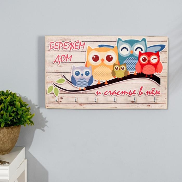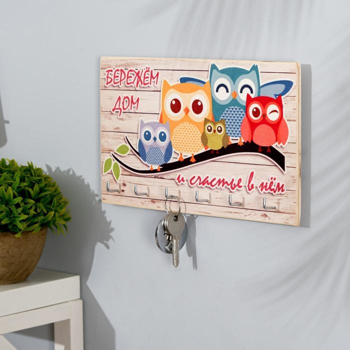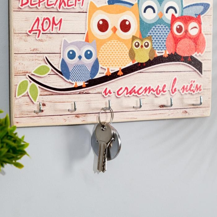 Ключница деревянная "Бережем дом и счастье в нем" 6 крючков 25х15 см