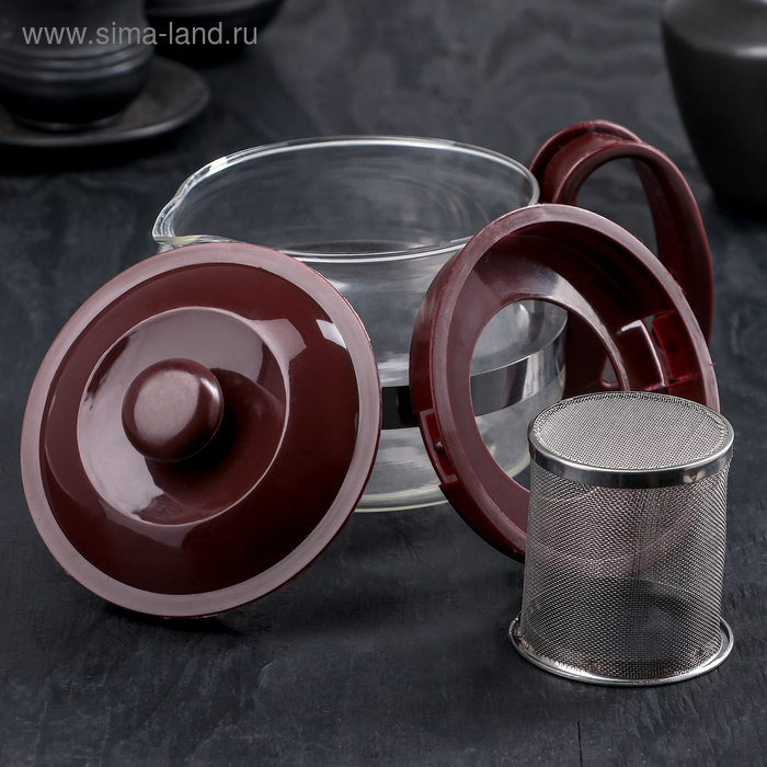 Чайник стеклянный заварочный «Бруно», 750 л, 16×11,5×13 см, с металлическим ситом, цвет коричневый