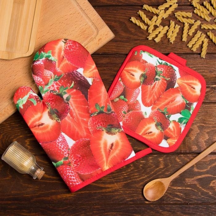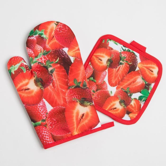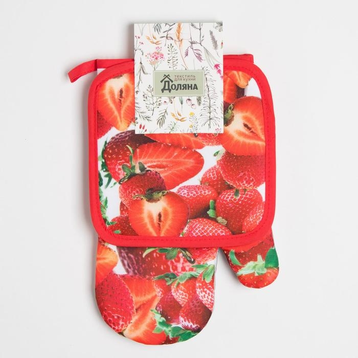 Кухонный набор Доляна «Клубника», прихватка 17*17 см, рукавица 26*16 см,100% п/э