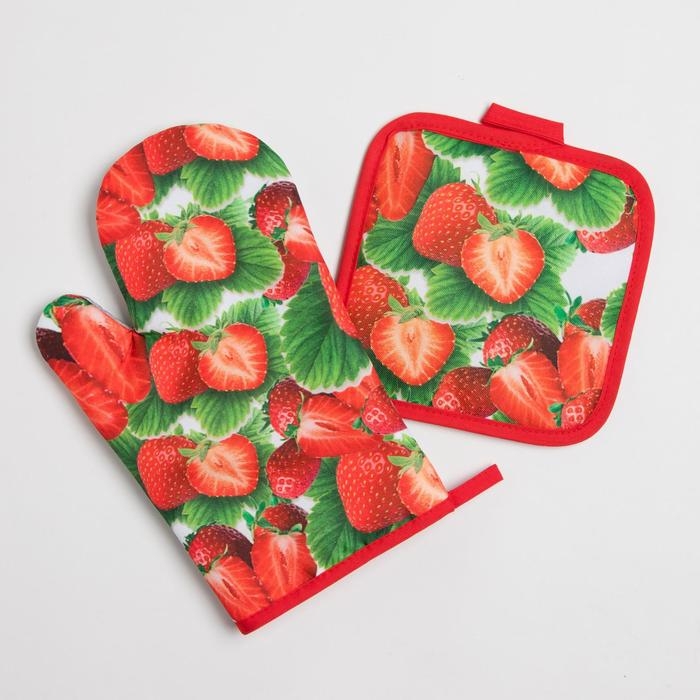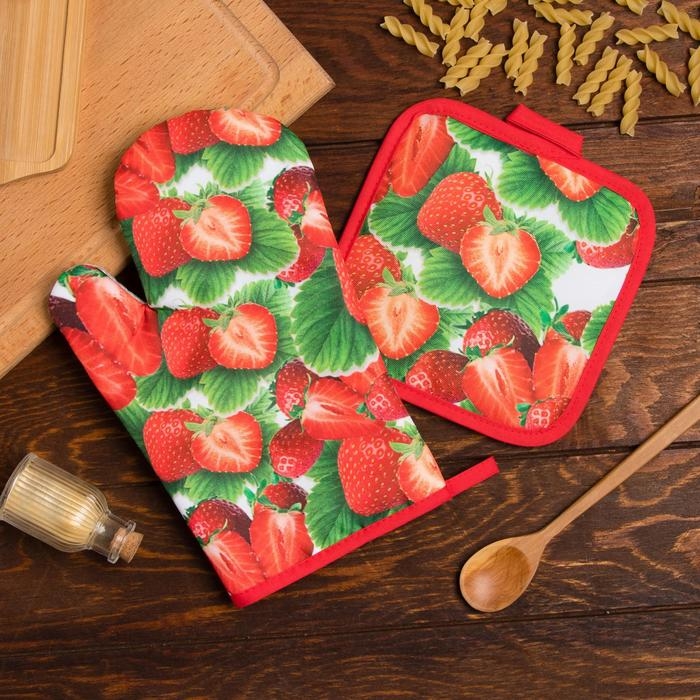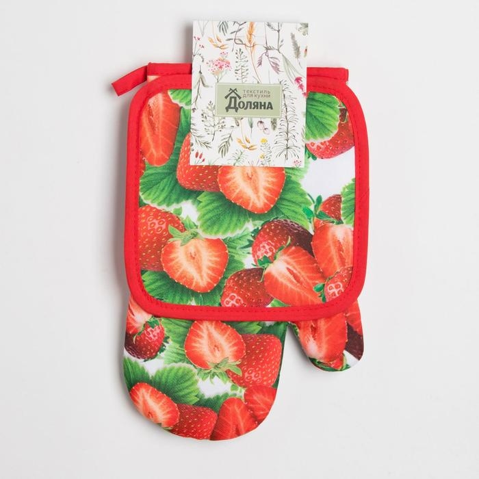 Кухонный набор Доляна «Клубника» вид 2, прихватка 17*17 см, рукавица 26*16 см,100% п/э
