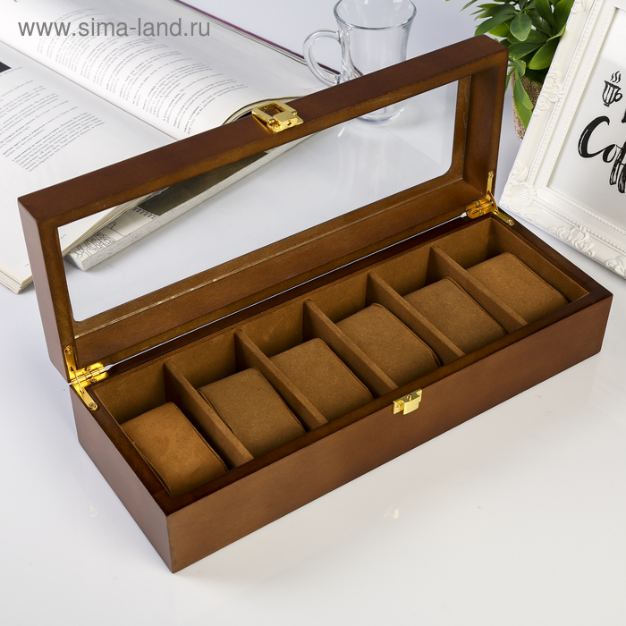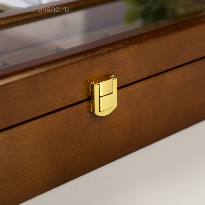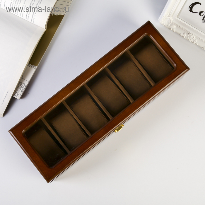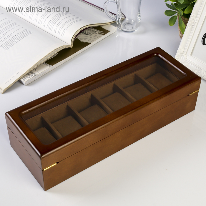 Шкатулка дерево под часы 6 отделений "Стиль" коричневая 12,7х8х33 см