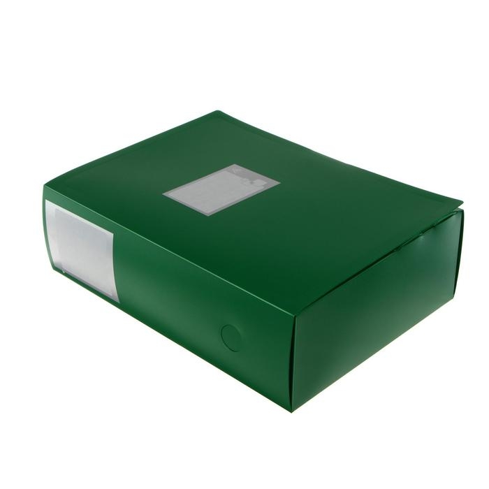 Папка-короб архивная А4, корешок 100 мм, Calligrata, пластик, вырубная застежка, зелёная, до 900 листов