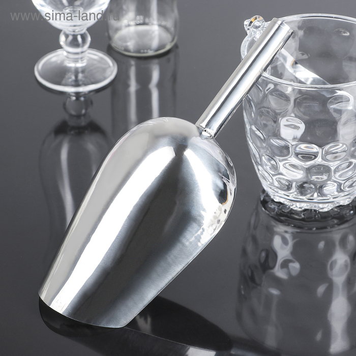 Совок из нержавеющей стали для льда и сыпучих продуктов, 200 мл, 22×8 см, цвет хромированный