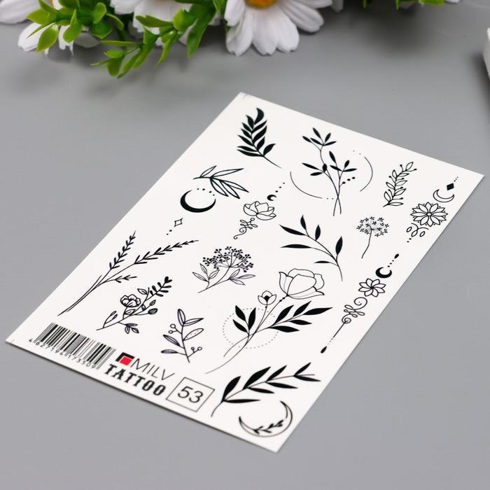 Татуировка на тело "Ч/б цветы" 10х15 см