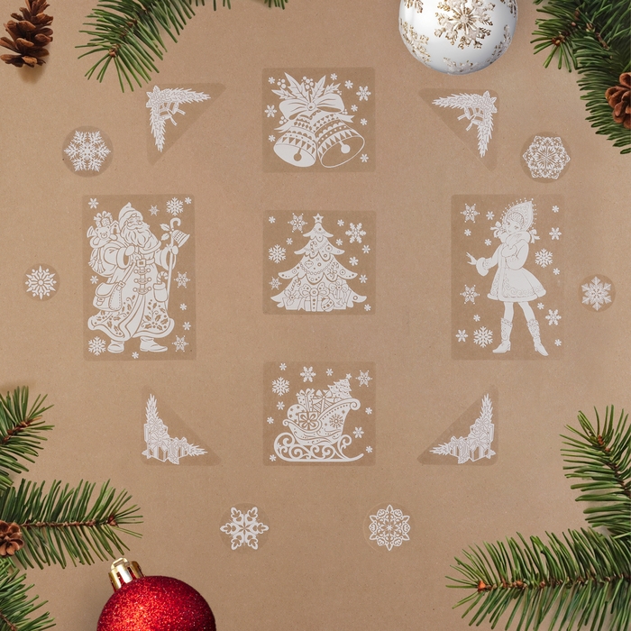 Набор наклеек новогодних "Ёлка. Дед Мороз. Снегурочка" 35 х 33 см