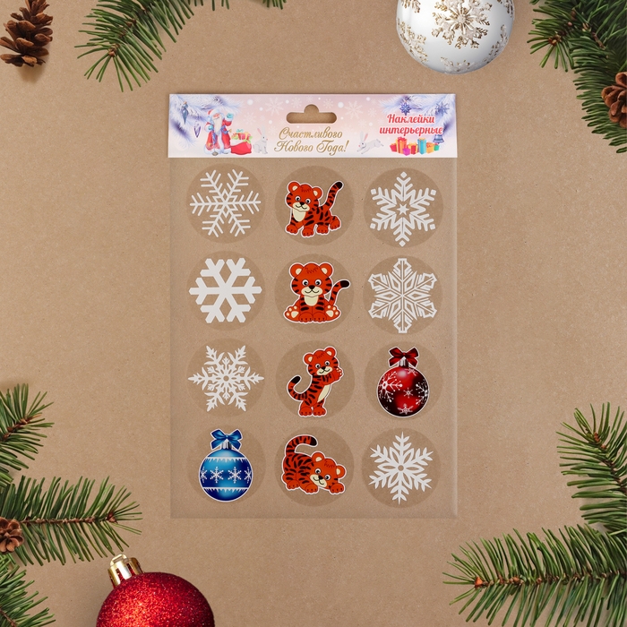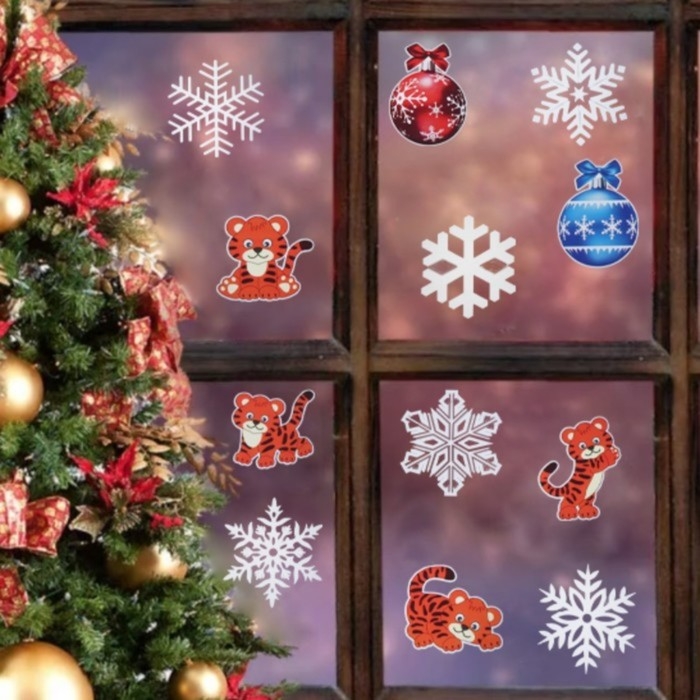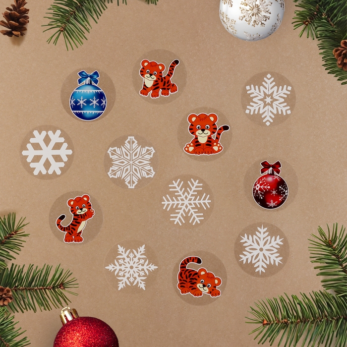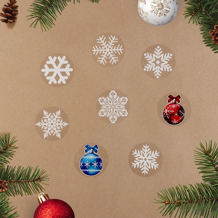 Набор наклеек новогодних "Снежинки" 9 х 9 см, 12 наклеек новогодних в наборе, микс